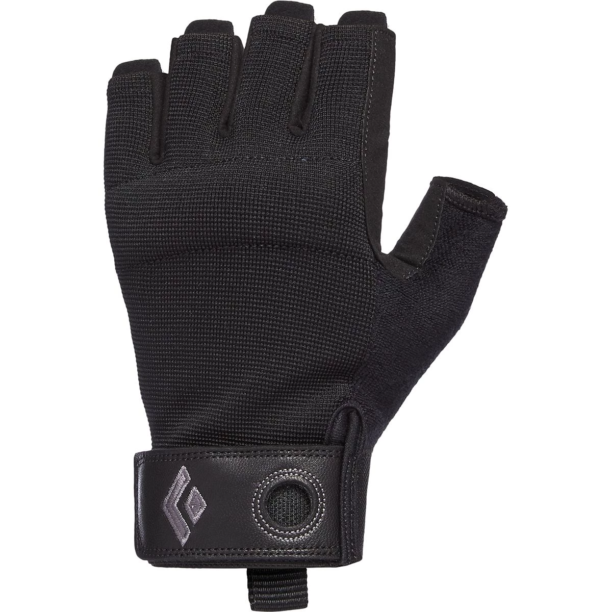 Lightweight and highly breathable, the Black Diamond Crag Half-Finger Climbing Glove is ideal for long belay sessions at the sport crag or jugging fixed lines. Synthetic leather on the palm gives you a sure grip while the half-finger design leaves your finger tips free for knots, zippers, and snacks. Black Diamond designed the back of the glove out of stretchy mesh for breathability and dexterity.