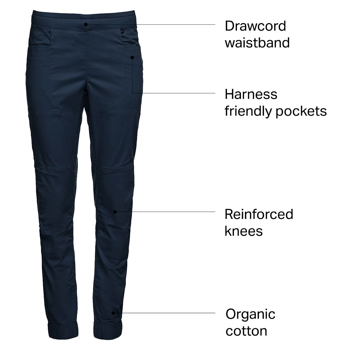 Make your back-flags seamless with the Black Diamond Notion SP-an organic cotton pant with just enough stretch for bouldering and sport climbing. On more technical climbs, the elastic cuffs keep pant legs secure around the ankle to hone in on knobby granite footholds and reinforced knees protect your skin from cheese-grater rock on less-than-graceful sequences. Once you’ve reached the chains and lowered, the comfort on the wall is matched on the groundβthe Notion SP will make you feel like you’re lounging in sweatpants between burns.