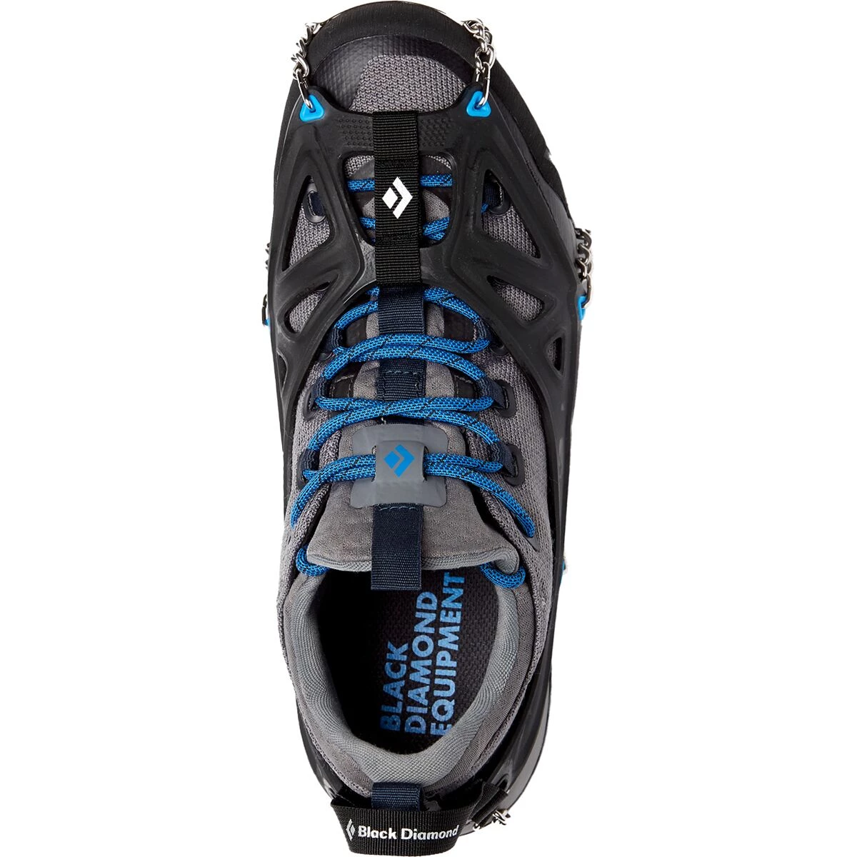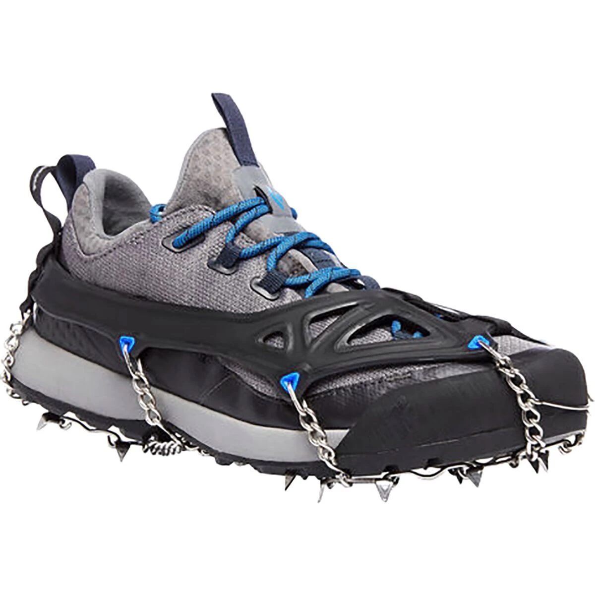 - Spikes strap to hiking shoes and backpacking boots for icy trails